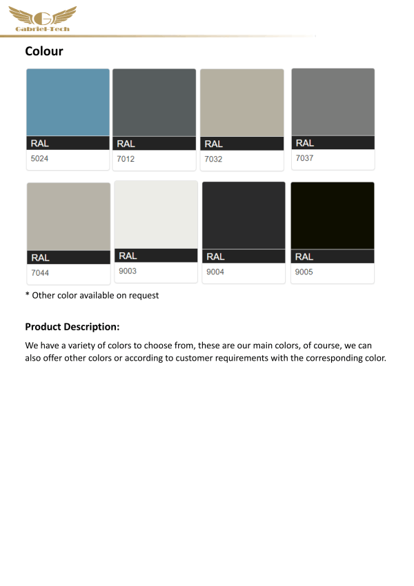 We have a variety of colors to choose from, these are our main colors, of course, we can also offer other colors or according to customer requirements with the corresponding color.
