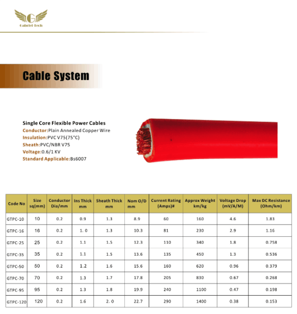 Single core flexible power cables with plain annealed copper wire covered with PVC V75 insultation.